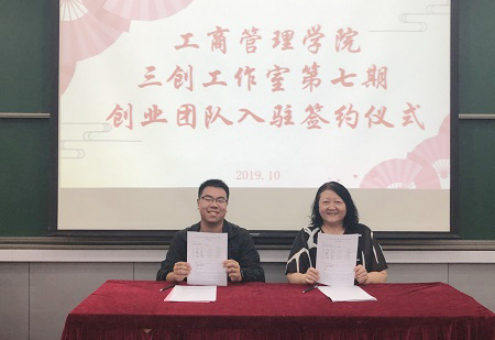 近日,工商管理学院举行三创工作室第七期创业团队入驻签约仪式。学院副院长傅丽、党委副书记林芙蓉、全体辅导员及各创业团队成员出席了签约仪式。