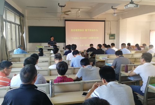 10月29日下午,轮机工程学院党委书记周学智以“坚定理想信念,敢于担当作为”为题,为学院教工党员上“不忘初心、牢记使命”主题教育专题党课。校主题教育督导组有关成员到场指导。