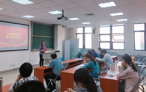 10月29日下午,理学院院长宾红华为学院师生党员上主题为"坚定理想信念,做合格共产党员"的党课,校主题教育督导组有关成员到场指导。