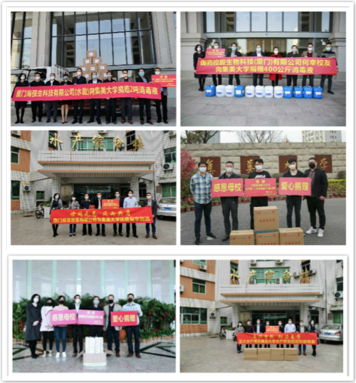其中,厦门惠盈动保集团有限公司董事长、我校校友会水产行业分会名誉副会长、2011级水产养殖研究生庄若飞校友向学校捐赠消毒液2吨;厦门燊龙贸易有限公司总经理、我校校友会水产行业分会常务理事、淡渔98级宋志忠校友,捐资50008元到我校水产校友基金,用于抗疫期间物资采购及资助困难学生;国药控股生物科技(厦门)有限公司总经理、淡渔90级何幸校友向学校捐赠消毒液400公斤;漳州卜蜂正大水产有限公司总经理项仁水及福州大福有限公司经理、渔科05级校友陈文良代表正大集团向学院捐赠口罩4000个,表达了企业和校友尊师重教、助力复学的拳拳心意。学院2015级水产专业硕士研究生乐普敏身在湖北荆州,却心系学校、学院,出资购买酒精捐赠给学校300瓶、学院200瓶;生物学11级硕士研究生段利朋、水产养殖11级林晓煜校友捐赠一次性口罩2000个。
