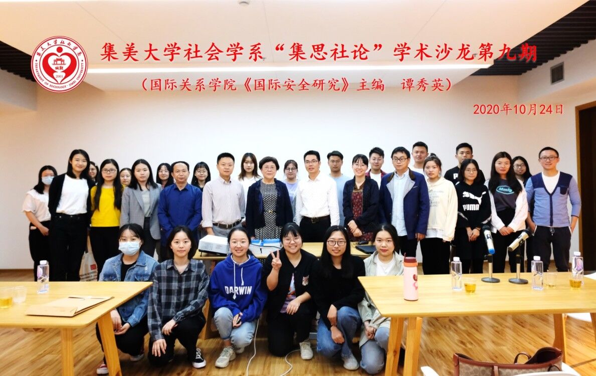 为进一步提升学术涵养、规范学术研究,10月24日晚,第九期“集思社论”学术沙龙于尚大楼710会议室顺利举行。本期特别邀请到国际关系学院《国际安全研究》期刊主编谭秀英作关于《论文写作与投稿改稿》的专题讲座。本次讲座由学院副院长姚进忠主持,社会学系5位教师、2020级研究生、本科生,马克思主义学院研究生等30余人参加了活动。