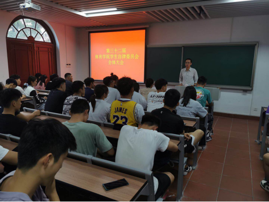 10月28日,体育学院召开自律会第三十二届学生干部会议。会议由指导老师陈似海主持,自律会全体学生干部参加会议。学院党委副书记李智干出席大会并讲话。