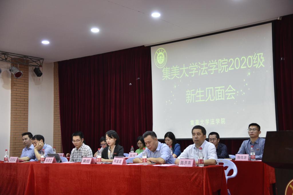 近日,法学院在吕振万楼六楼文会阁召开2020级新生见面会,学院党政领导、工会主席、各系主任、班主任、辅导员及2020级全体学生参加了此次见面会。会议由院党委副书记陈开燕主持。