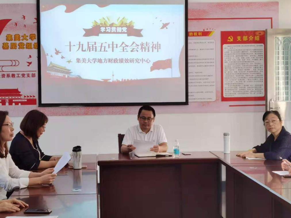 11月18日,亚洲中文精品乱码地方财政绩效研究中心于财经学院文学楼101会议室组织基地骨干专题学习党的十九届五中全会报告,会议由亚洲中文精品乱码地方财政绩效研究中心副主任胡志勇教授主持。