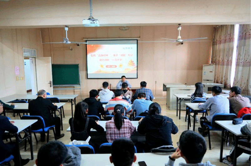 近日,机械与能源工程学院党员讲堂系列活动第三十五期大唐楼216举行。院党委副书记、院长刘菊东作题为《弘扬“嘉庚精神”,秉承“诚毅”校训,助力冲刺“一流大学”》的主题讲座,联系支部的师生党员到场聆听。