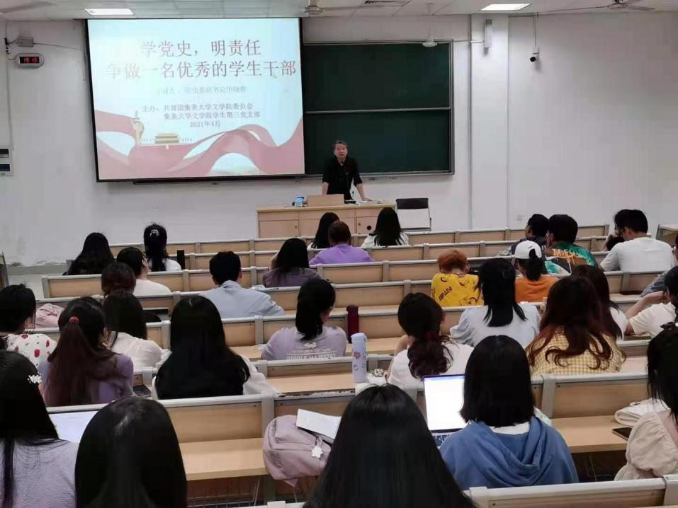 按照学校和学院部署,近日,文学院在建发0315召开全院学生干部党史学习教育系列辅导报告会。学院党委副书记华晓春、团委负责人和全体辅导员参加会议。