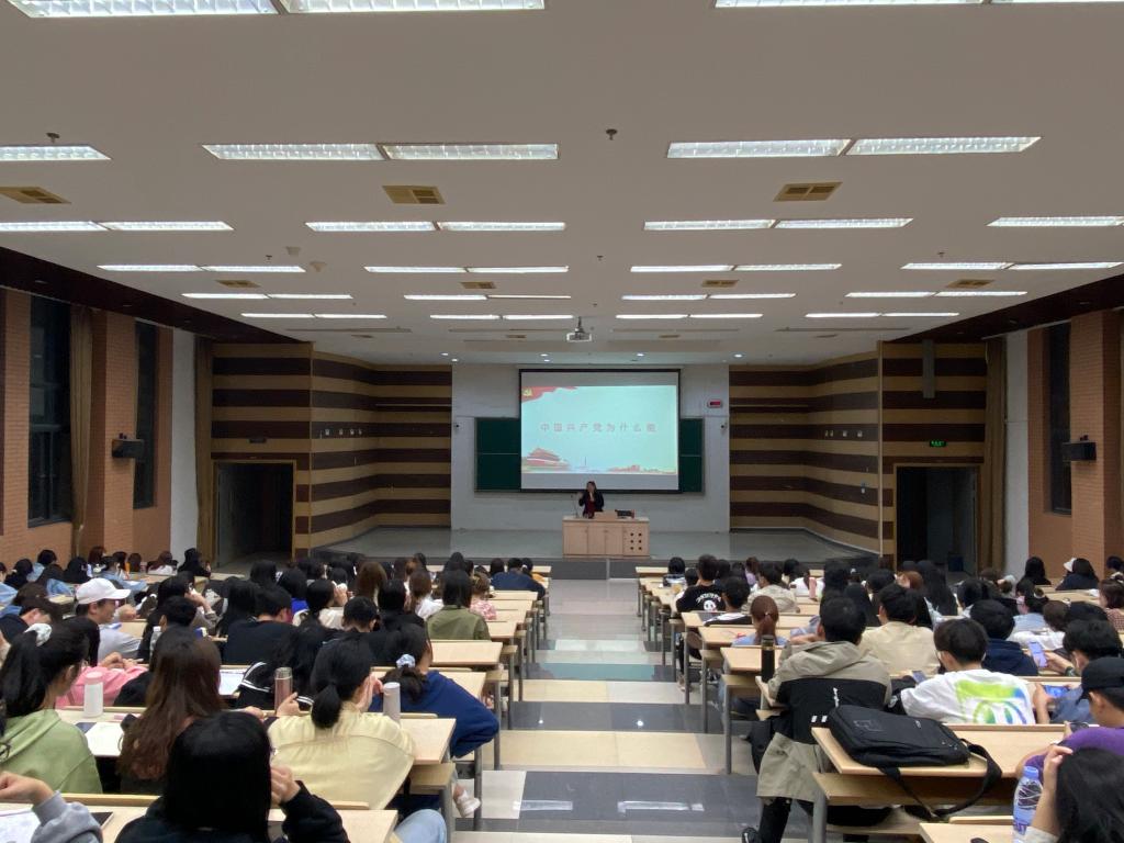 赖怡静从科学的理论指导、坚定的理想信念、强大的组织优势、坚实的群众基础、彻底的自我革命五个方面向同学们讲述了“中国共产党为什么能”。她指出中国共产党在马克思主义学院科学理论的指导下,不断发展壮大,通过分享党的发展历程中的小故事,让同学们真切感受到中国共产党是如何始终坚持“人民利益至上”这一宗旨,强调要坚定理想信念,凝聚前进力量。