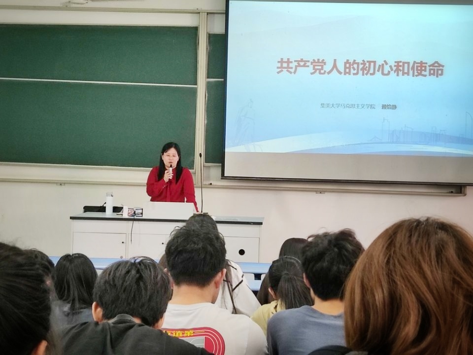 赖怡静从党的建设与改革时期两个方面和同学们分享了党的初心和使命,联系大学生对前途迷茫的现状,鼓励学生在党光辉的照耀下一路前行。最后,赖怡静老师呼吁同学们,将个人命运时刻与党联系在一起,做新时代中国共产党的坚定拥护者。