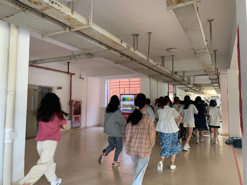 演练活动中,随着警哨声响起,同学们迅速、有序地从宿舍撤离到宿舍楼安全区域整队集合,历时2分钟,达到了预期效果。整个演练过程中,分工明确,责任到位,全体同学有序安全撤离。