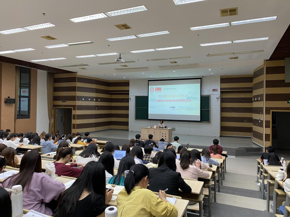 4月21日晚上,法学院在美岭0210教室开展党史教育学习活动,马克思主义学院戴美玲老师分别为2019级和2020级法学院同学作《中国共产党与中华优秀传统文化》的党史讲座。