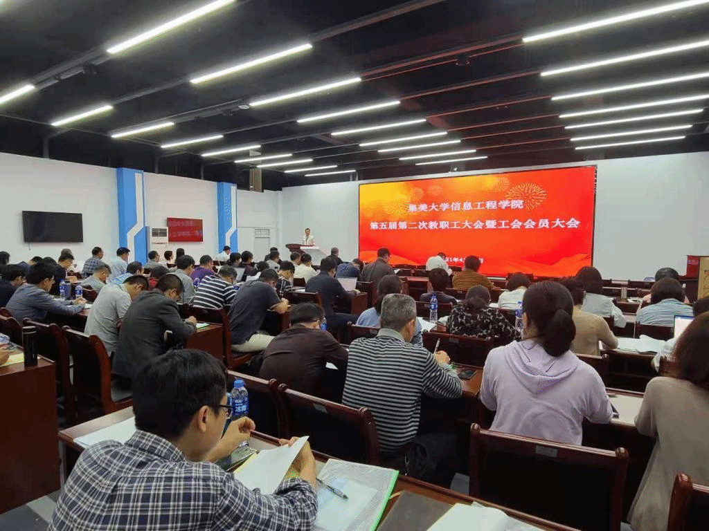 4月28日下午,信息工程学院召开了五届二次教职工暨工会会员大会,大会由学院党委副书记于宏鹏主持。