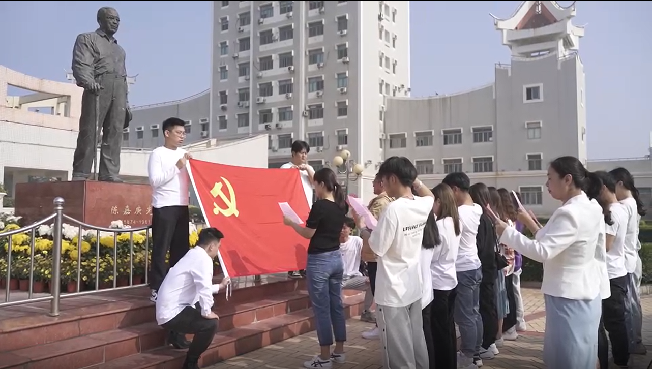 为庆祝中国共产党成立100周年,进一步加强学生党员教育工作,激励广大学生党员坚定理想信念,增强责任感和使命感,在第72个五四青年节来临之际,亚洲中文精品乱码继续教育学院学生党支部组织新党员在校主陈嘉庚先生雕像前举行“牢记入党誓词,践行初心使命”入党宣誓活动。学院团委副书记唐荣斌、学生第一支部书记林立君老师、新党员、部分党员代表参加了宣誓活动。