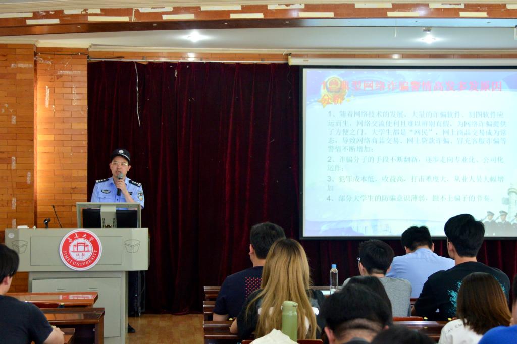 5月26日下午,海外教育学院邀请集美学村派出所民警李清德开展防诈骗专题讲座,学院近300名学生聆听了讲座。