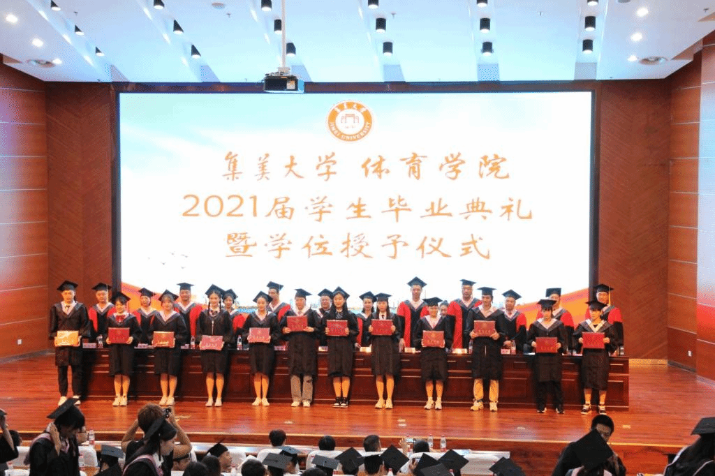 典礼上,院党委书记邱邑亮为优秀毕业生代表颁发荣誉证书。院长高楚兰教授作题为《以嘉庚体育思想筑梦青春》的致辞。她代表学院向全体毕业生送上最热烈的祝贺,向辛勤培育学生的园丁们致以最诚挚的感谢。在中国共产党成立100周年这一历史时刻,高楚兰真情回顾了校主陈嘉庚先生的“体育梦”和2021届毕业生的“集大日历”,指出他们是学校百年校庆和学院建院60周年的见证者和参与者,正是他们以嘉庚体育精神不懈奋斗燃起的点点星光,才汇聚成了学院今天发展的星河。她希望同学们弘扬嘉庚体育思想,坚守家国情怀,诚以待人,毅以处事,为祖国的体育事业奋斗,做新时代的追梦人,创造幸福人生。
