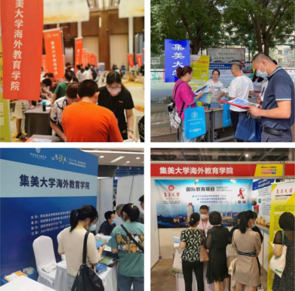近日,海外教育学院全体行政人员奔赴全国各地参加高校招生咨询会,为考生和家长答疑解惑。