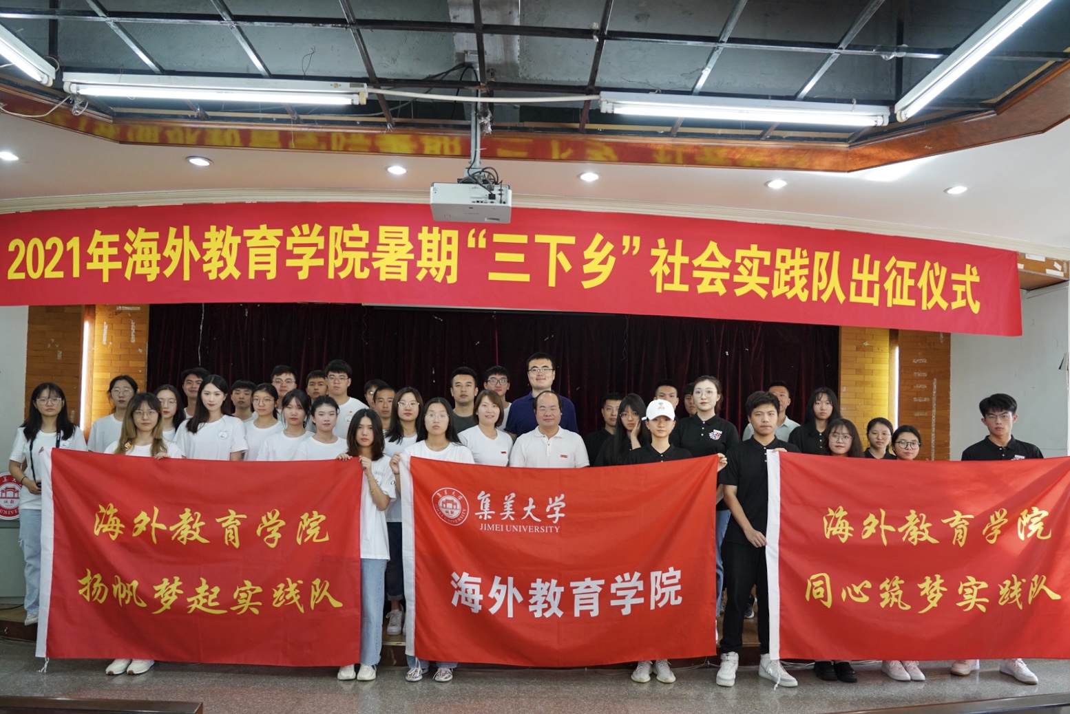7月10日上午,海外教育学院2021年暑期“三下乡”社会实践队出征仪式在学院三楼多功能厅举行,学院党委副书记陈茂才、团委副书记邢龙森、社会实践队指导老师和全体成员参加。