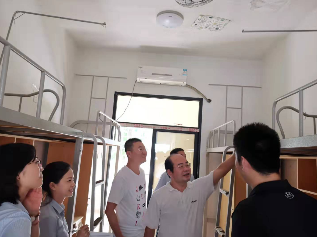 在每间宿舍,检查组对床铺、桌椅、门窗、阳台、空调、电风扇、用水用电等安全问题,以及宿舍环境、家具等卫生清洁进行逐一认真检查,对存在的问题进行登记,并要求物业配合及时处理。