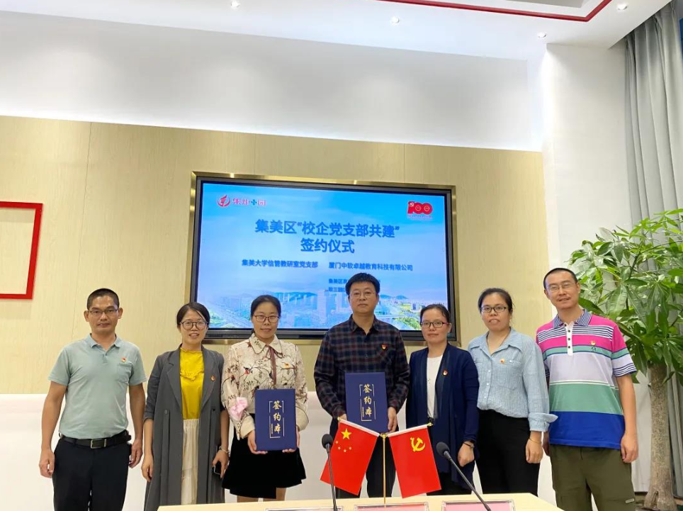 近日,计算机工程学院信管教研室党支部与厦门中软卓越教育科技有限公司党支部签署校企支部共建协议。双方党支部代表出席签约仪式。