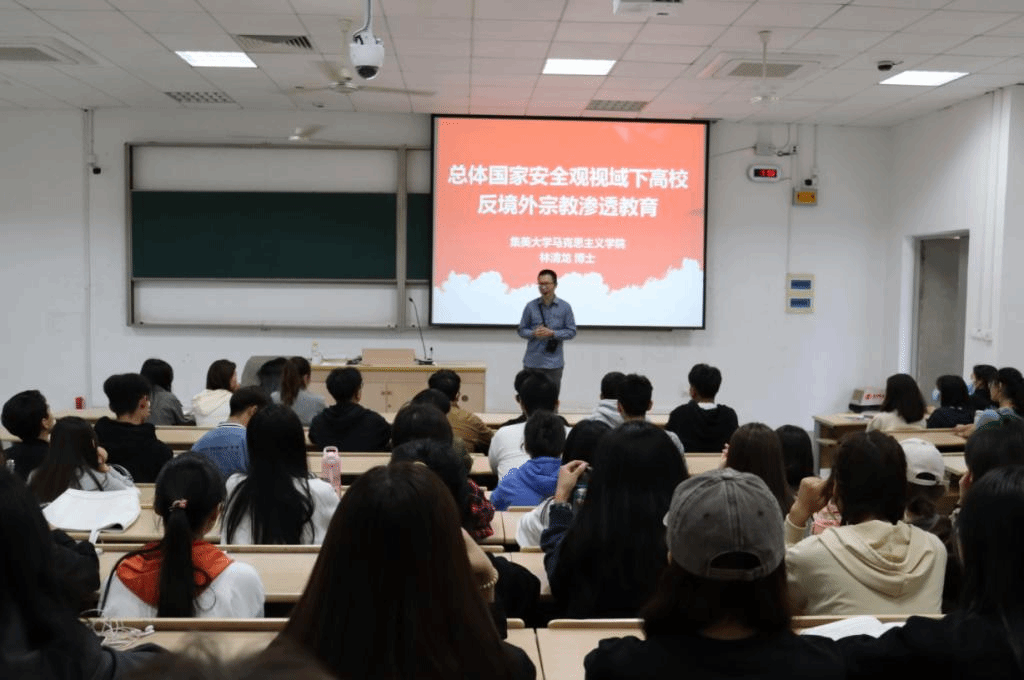 11月8日下午,师范学院于美岭0401举办“总体国家安全观视域下高校反境外宗教渗透教育”主题教育讲座,马克思主义学院林清龙博士应邀主讲,2021级民预新生聆听了此次讲座。