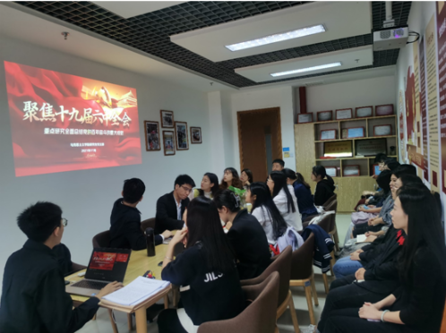 11月17日下午,马克思主义学院研究生党支部开展党的十九届六中全会精神专题学习研讨会。学院全体学生党员参加会议,会议由研究生党支部书记蔡进源主持。