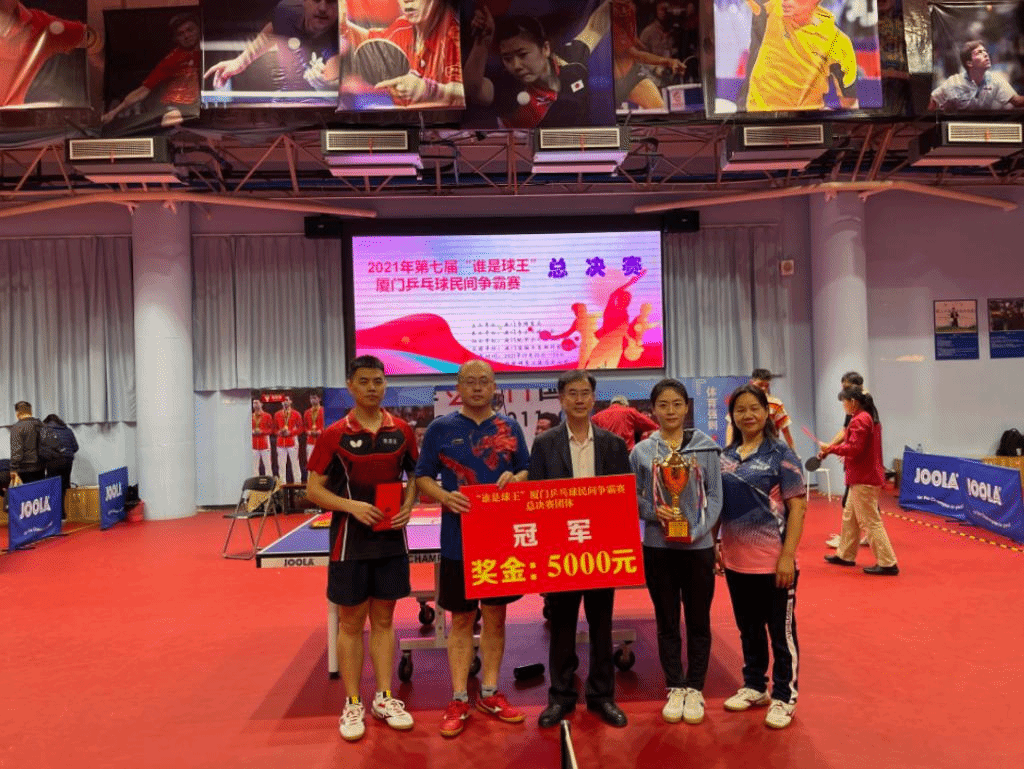 近日,由厦门市体育局主办、市乒乓球协会承办、跃华乒乓球俱乐部协办、厦门家丽士生物科技有限公司赞助的2021年第七届“谁是球王”厦门乒乓球民间争霸赛总决赛在五缘湾运动馆隆重举行。