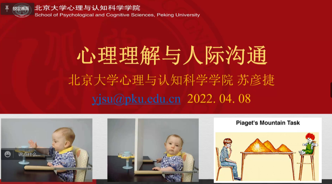 苏彦捷以两个经典的心理实验引出本次讲座的主题,从心理理解的定义入手,通过生动有趣的实验与视频展示出心理理论的发展脉络,从面部表情、身体姿势、言语表达、交流情境四个方面进行心理解读。通过中西方亲子交流方式的比较研究,解释了中西方儿童心理理解能力的获得与发展差异。每个人的心理理解能力存在差异,在发展中相遇的个体要在关系中互相理解与共同成长。最后苏彦捷为大家介绍了如何在心理理解的基础上做到更好地沟通:善解人意的同时也要对自己宽容,用适当的方式进行表达可能会有更好的收效。