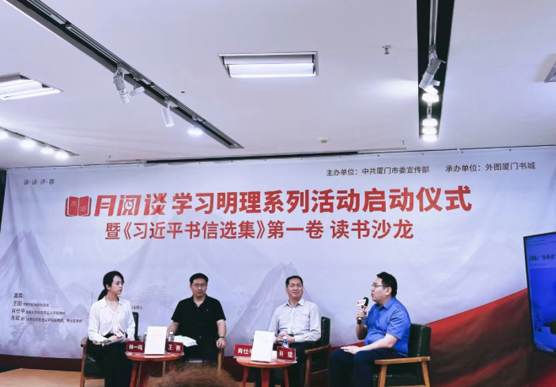 4月22日下午,马克思主义学院肖仕平教授及2020级学科教学(思政)专业研究生柯艺涵受邀参加由厦门市委宣传部主办、厦门外图集团承办的大型创新理论学习宣传宣讲项目——“月•阅•谈”学习明理系列活动首期读书沙龙。