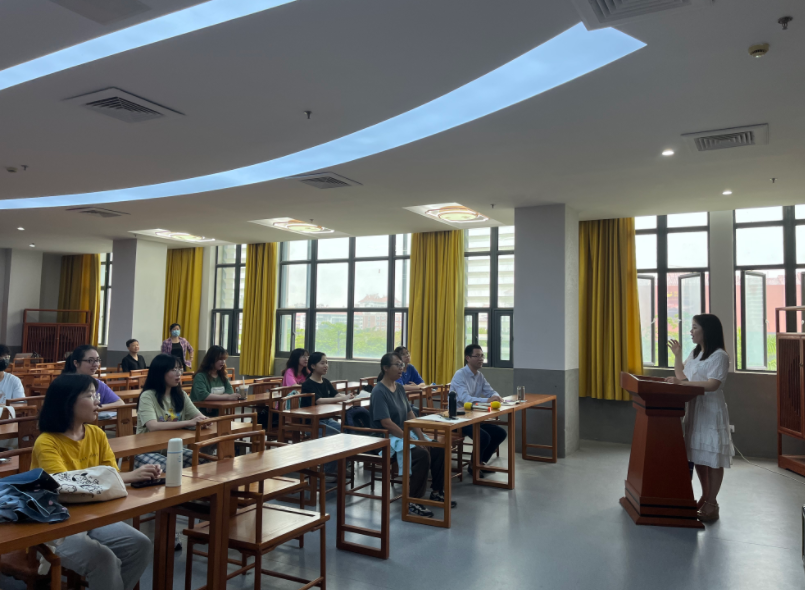 刘婷从发声原理、嗓音保护与训练的意义、嗓音保健的方法等方面进行了讲述,并通过讲解、答疑、带训等方式,帮助师生了解嗓音保健的意义,传授了日常嗓音保健的方法。在场师生还根据自身的教学和日常用嗓情况和刘老师进行了深入交流,活动现场互动频繁,气氛融洽。