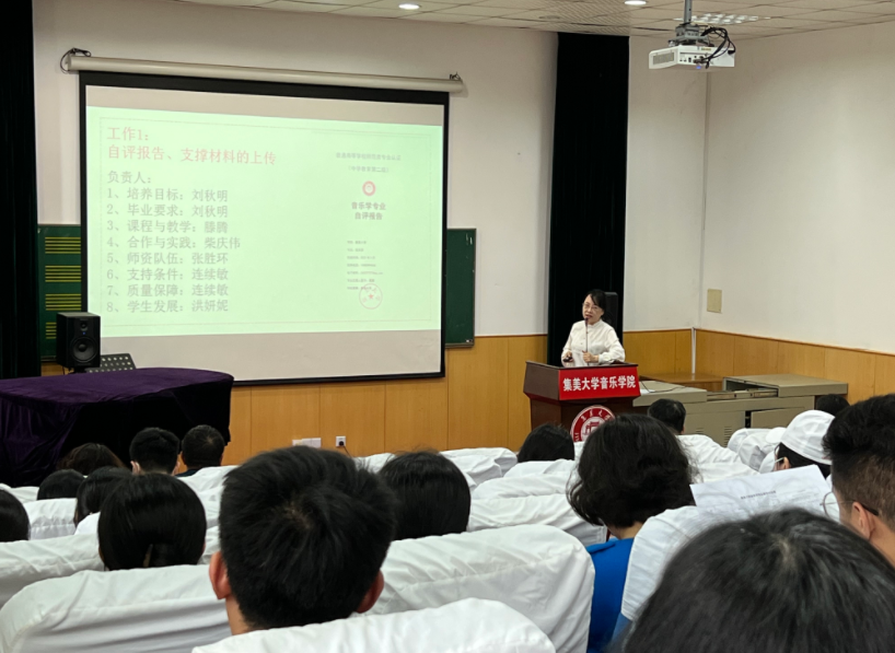 5月25日下午,音乐学院召开师范专业认证工作动员大会。会议由学院党委副书记洪妍妮主持。全体教职工参加了会议。