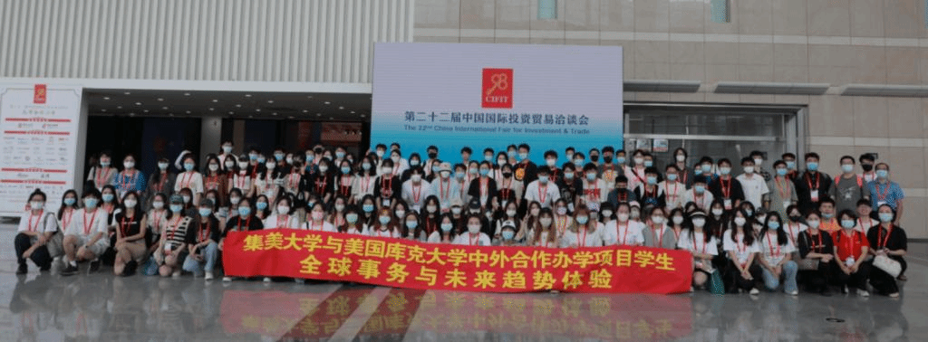 9月9日下午,海外教育学院组织中美合作办学库克项目2020级100多名学生参观“第二十二届中国国际投资贸易洽谈会”。此次活动作为中美合作办学库克项目的美方特色课程《职业生涯规划——体验式学习》中六大体验之一“全球事务与未来趋势体验”的实践内容,旨在培养大学生成为新一代全球化未来化的国际新型社会人才。