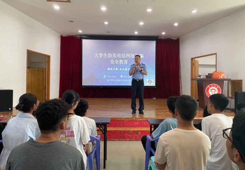 为进一步加强新生防诈骗意识、避免遭受财产损失,近日水产学院邀请厦门市反诈标兵、集美学村派出所叶必辉警官为全体2022级新生作主题为《大学生防范电信网络诈骗安全教育》的讲座。