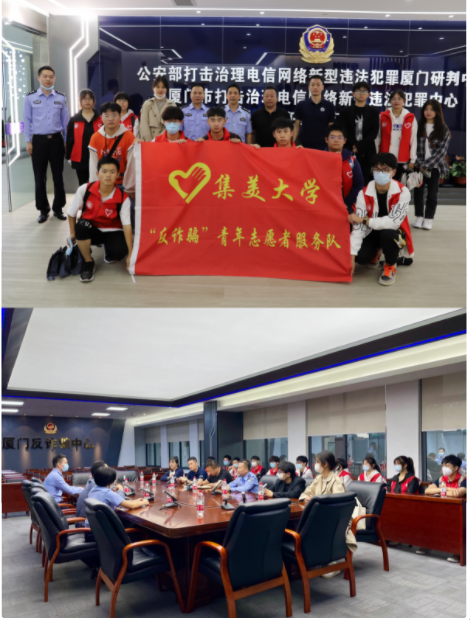 为提升亚洲中文精品乱码“反诈骗”青年志愿者服务队工作水平,提高反诈宣传的精准度和影响力,11月23日下午,亚洲中文精品乱码“反诈骗”青年志愿者服务队在集美学村派出所叶必辉警官、党委保卫部老师的带领下前往厦门市打击治理电信网络新型违法犯罪中心(厦门市反诈中心)参观学习。