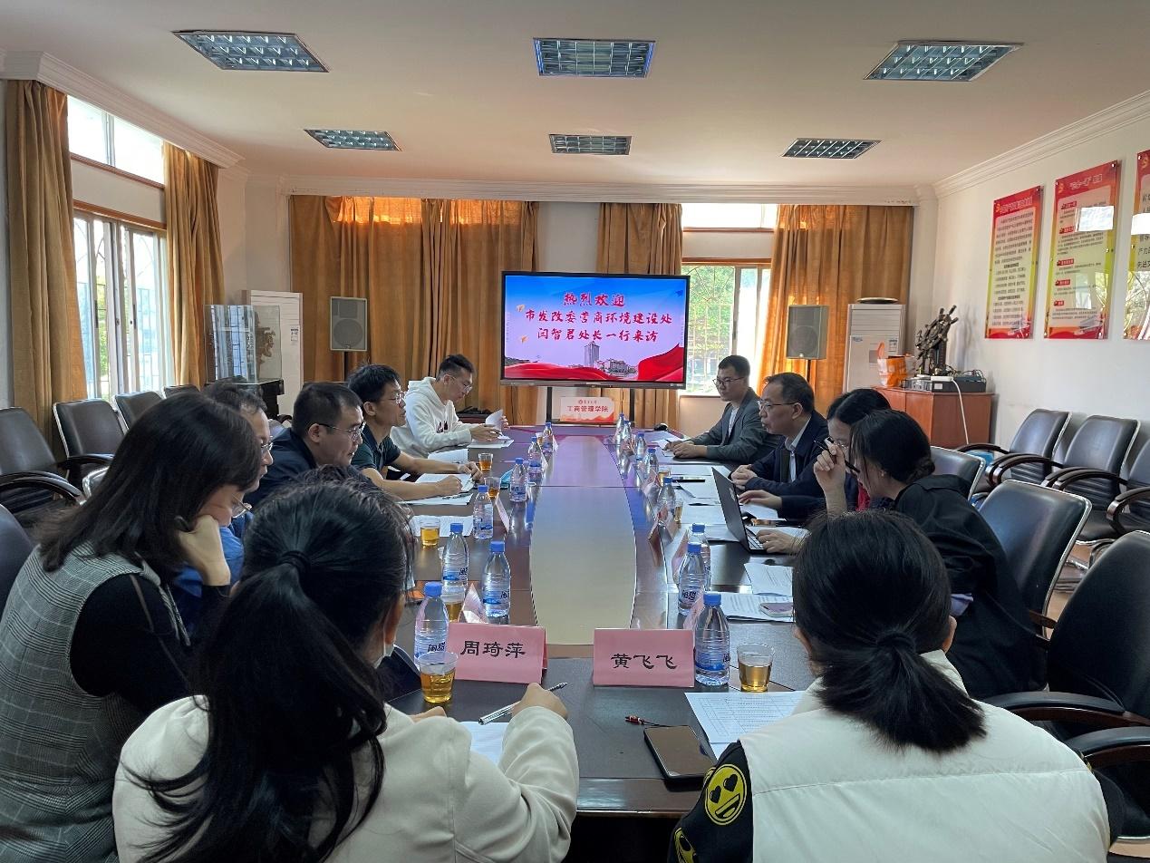 近日,厦门市发展和改革委员会营商环境建设处处长闫智君一行5人调研工商管理学院,就我市营商环境优化工作以及双方的合作共建,与学院领导及老师进行深入交流。学院院长邱吉福、营商环境研究中心主任汤韵,副主任丁青、卢小静,以及相关合作课题的负责老师参加了座谈会。
