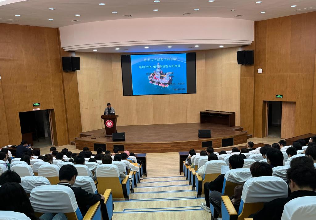 3月14日,轮机工程学院举办题为“船舶行业--值得你我奋斗的事业”的讲座。讲座由院党委副书记赖龙荣主持,学院林国珍教授主讲,船舶22级和部分轮机陆上专业学生参加。