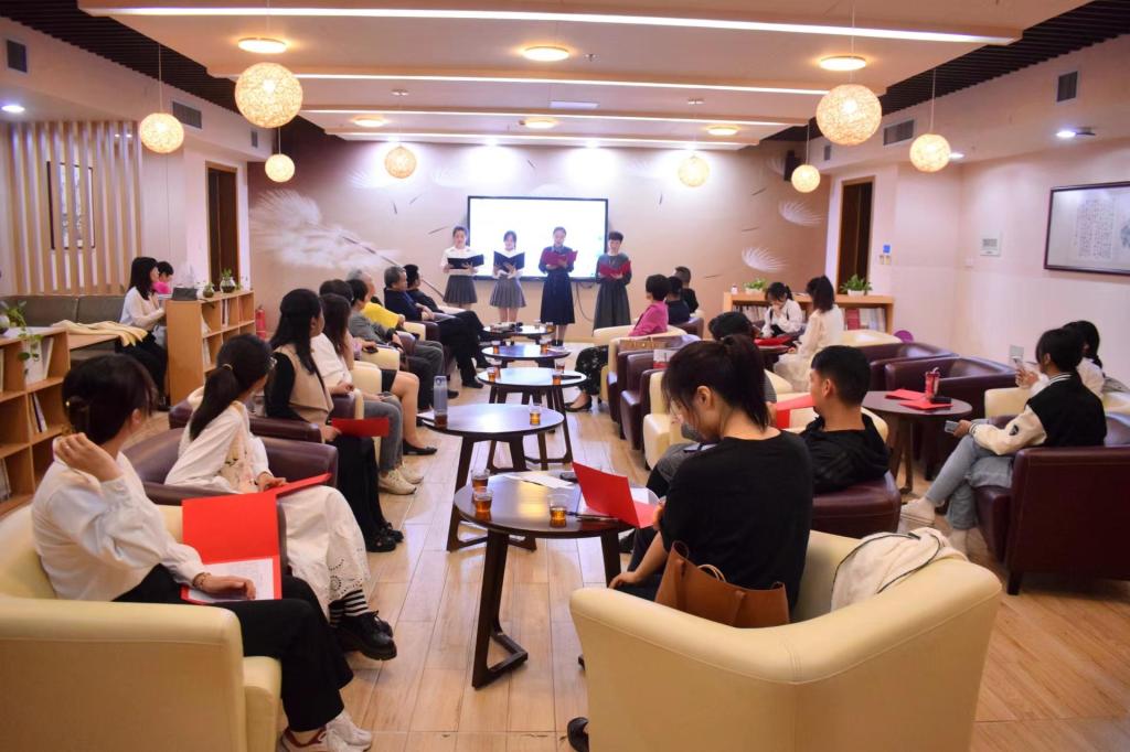 此次活动是校工会举办的教职工读书节系列活动之一。马克思主义学院李晋玲教授以《围绕中心任务更好发挥集大工会作用——学习贯彻党的二十大精神》为主题,将党的二十大工作报告与工会实际工作相结合,以“实施科教兴国,强化现代化建设人才支撑”和“增进民生福祉,提高人民生活品质”为重点,阐述工会应如何在党的领导下,顺应时代要求、找准自身定位、积极履行职责,全方位、多维度地将党的二十大精神贯穿在工会工作中。教职工朗诵演讲协会诵读了《岳阳楼记》《长征》等文学作品,生动展现了文人前辈不畏艰难险阻,为社会进步而艰苦奋斗的精神。在场师生就经典古诗词展开探讨,共同感受中华优秀传统文化魅力,感悟伟大民族精神。