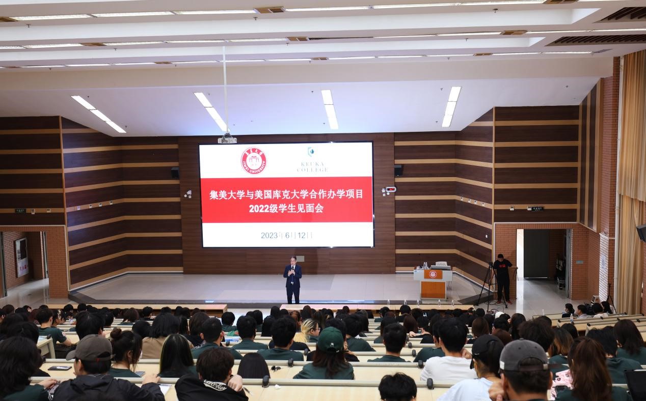 6月12日上午,我校与美国库克大学合作办学项目2022级学生见面会举行。美国库克大学国际总校区校长黄磊康,海外教育学院院长卢其乐、党委副书记陈茂才、相关老师以及库克项目2022级360名学生参加会议。