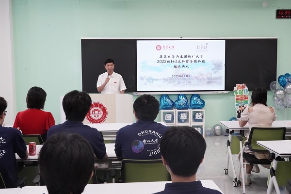 卢其乐代表学院向即将开启留学生涯、迈入崭新征程的中泰项目2022级学生表示祝贺,向为项目的成功举办付出辛勤工作的老师和工作人员表示感谢。他希望同学们牢记自己是一名集大嘉庚学子、一名中国青年,在留学期间勿忘“诚毅”校训,遵守中泰两国的法律法规,尊重泰国的历史文化,勤奋学习、刻苦钻研,努力成就人生梦想。泰国博仁大学中文国际学院院长游翔博士以视频致辞的方式,向同学们表达了问候和欢迎,期待同学们在即将开始的泰国留学生活中学有所成、满载而归。泰语任课教师李小雨一年来陪伴同学们从不识泰语到初步掌握泰语听说读写技能,见证了同学们的点滴成长与进步。她鼓励同学们在泰国留学期间积极结交朋友、提高语言能力、促进文化交流。学生代表郑舒玲同学表达了对集大校园生活和同窗情谊的依恋,对师长悉心教导的感恩,以及对泰国留学生活的憧憬。她表示将珍惜学习机会,不负青春年华,坚定逐梦前行。