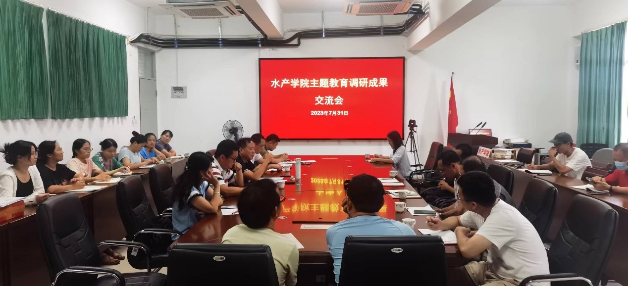 近日,水产学院召开主题教育调研成果交流会。学院党委领导班子成员、科级干部和党支部书记参会。会议由学院党委书记黄海宏主持。