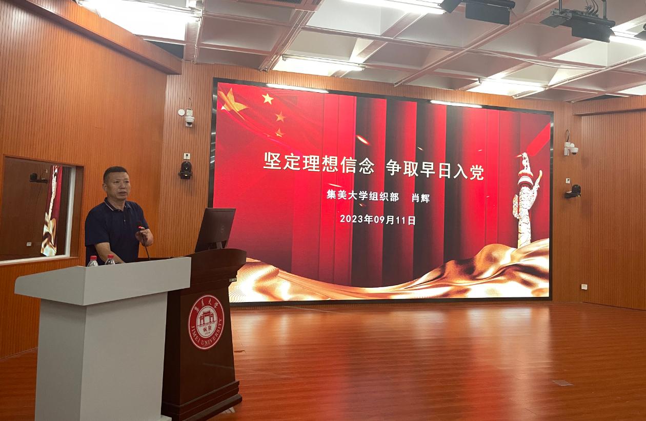 为增强学生对党的认识,端正入党动机,坚定入党信念,9月11日,音乐学院开展以“坚定理想信念 争取早日入党”为主题的入党启蒙教育专题讲座。讲座由校党委组织部副部长肖辉主讲,学院党委副书记洪妍妮主持,全体2023级新生及入党积极分子聆听了讲座。