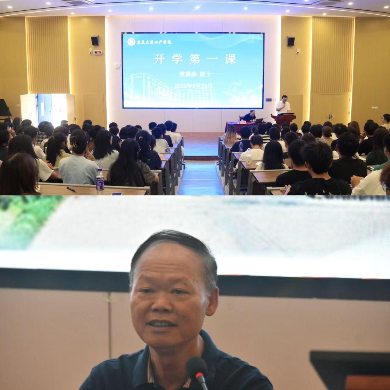 为帮助新同学增强专业认知,树立从事水产业的职业理想,9月24日,水产学院邀请院士麦康森教授在灿英楼211报告厅为2023级新生讲授题为《科学技术 水产科学 科技创新》的“开学第一课”,院长张春晓主持。