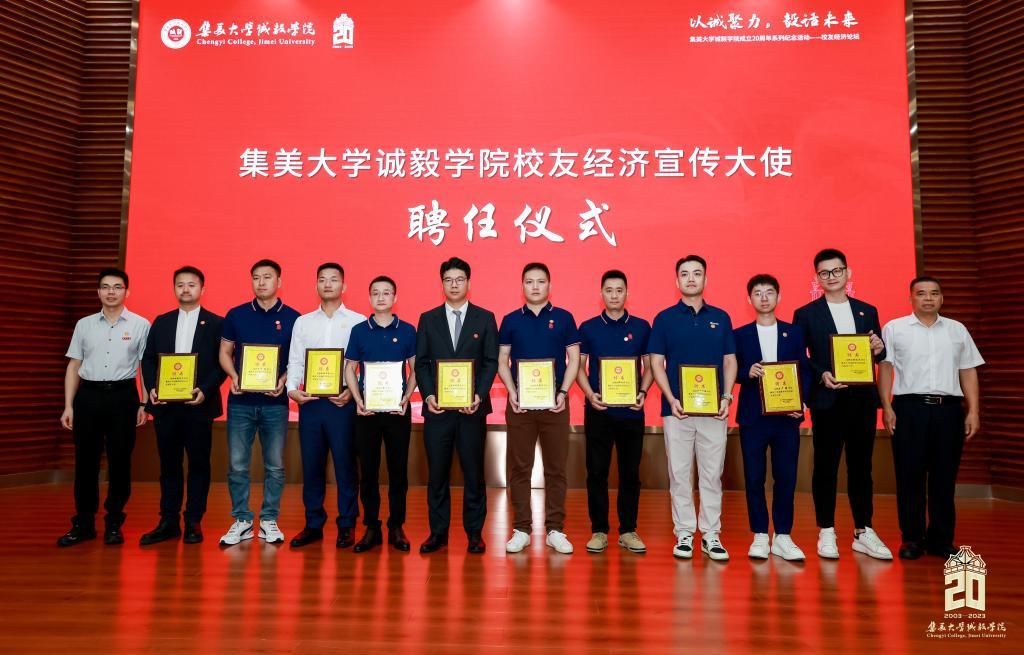 会上,学院联合集美文教区管委会向20位诚毅校友颁发首批校友经济宣传大使聘书,并成立了“亚洲中文精品乱码诚毅学院校友企业联盟”。