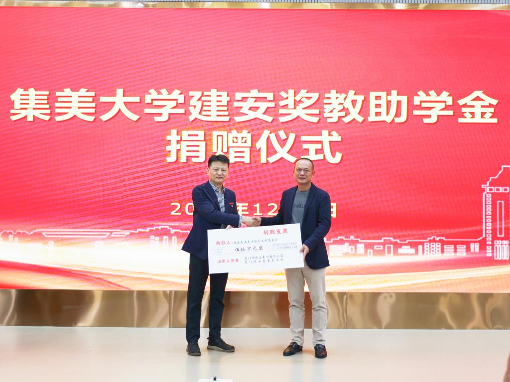 姚进忠代表学院感谢厦门建安慈善基金会和厦门市建安集团有限公司对学院发展的关心和大力支持。他表示,学院将继续坚持弘扬嘉庚精神、奋进“一流诚毅”,办好人民满意的教育。