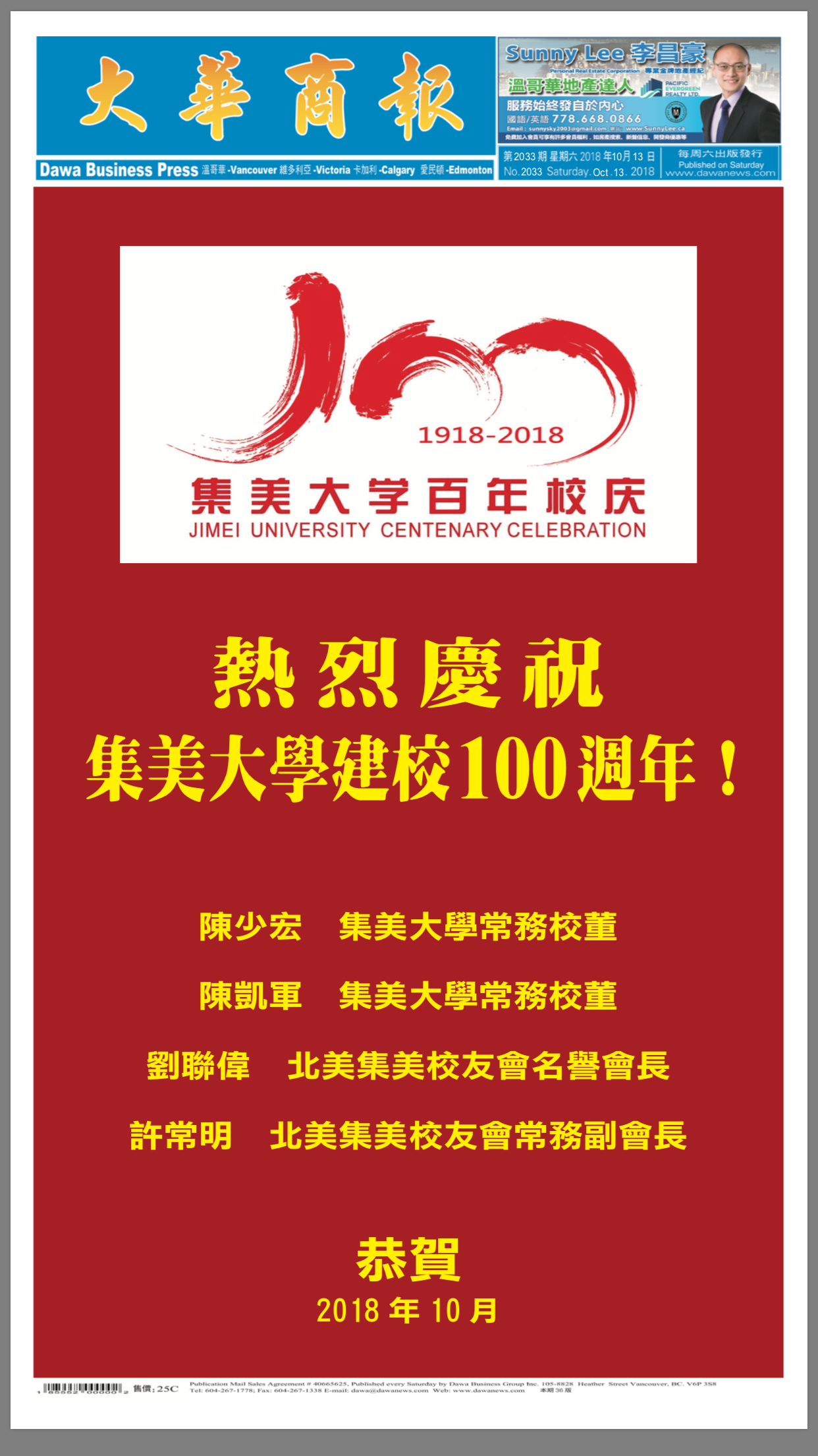 【加拿大—大华商报】热烈庆祝亚洲中文精品乱码建校一百周年