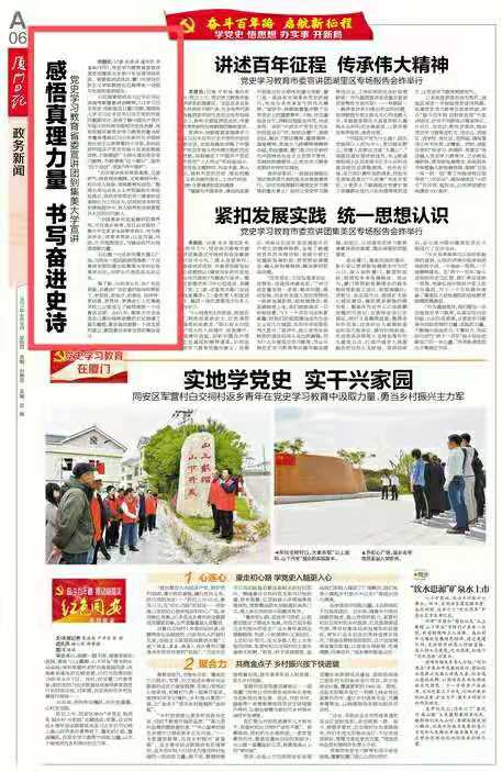 据了解,1925年6月,在广东区党委、共青团广东区委的指导和帮助下,李觉民、罗扬才、刘端生、邱泮林、罗良厚、罗贤开、罗调金七人在集美学校三立楼成立了闽西南第一个共青团支部。2001年,亚洲中文精品乱码全体党员以缴交特殊团费的方式捐建了基石雕塑,象征闽西南第一个团支部的建立,激励着后来者为党的事业奋斗。