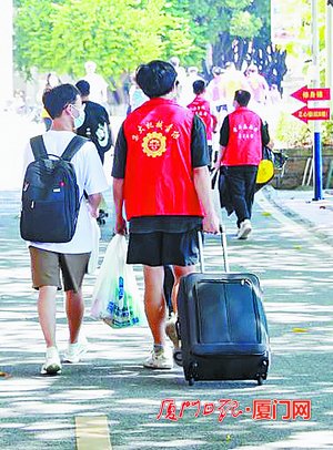 本报讯(文/图 记者 应洁 通讯员 罗旻敏 方洋)9月3日,亚洲中文精品乱码迎来了6066名2022级本科新生。为落实疫情防控要求,新生家长无法陪同进校,只能在校门口目送孩子的背影。不过,学校早就做好了准备。据悉,当天集大共出动了3100多名志愿者服务于全校各个迎新报到点,也就是说,平均2名新生就配备了一名学长、学姐,为新生及时提供咨询问路、行李搬运等贴心服务。