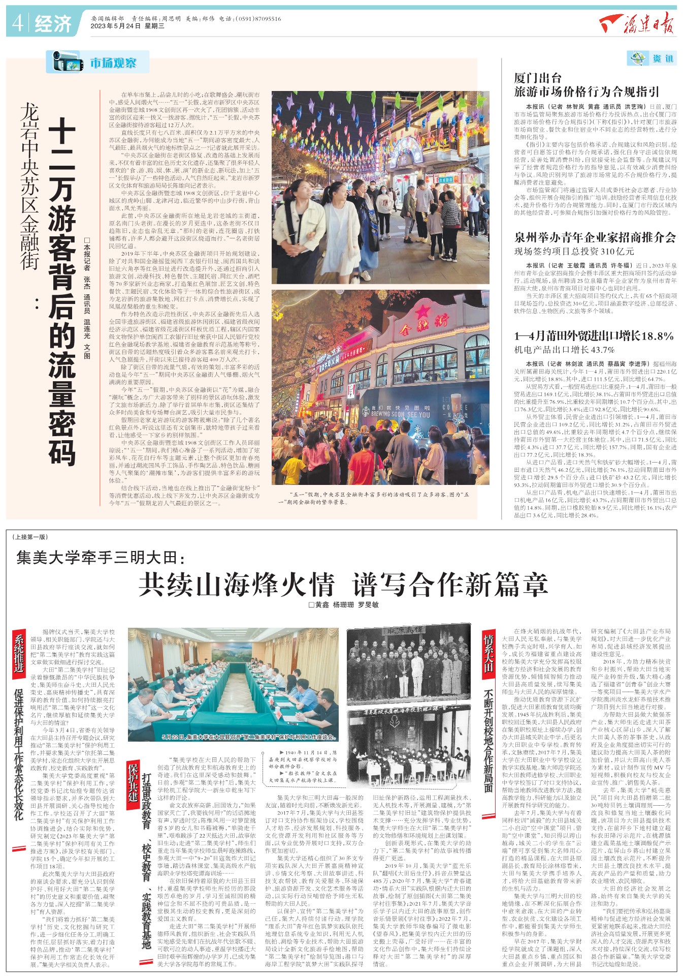 在烽火硝烟的抗战年代,大田人民无私奉献,与集美学校携手共克时艰,兴学育人。如今,成长为福建省重点建设高校的亚洲中文精品乱码充分发挥高校服务地方经济和社会发展的教育资源优势,倾情倾智倾力推动大田县高质量发展,续写集美师生与大田人民的深厚情缘。
