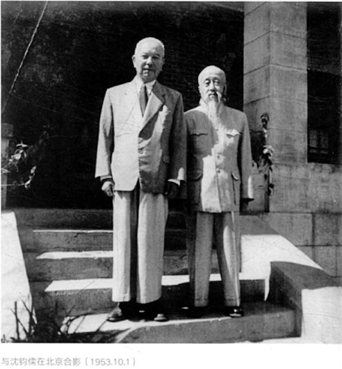 ▲陈嘉庚与沈钧儒(右)合影。