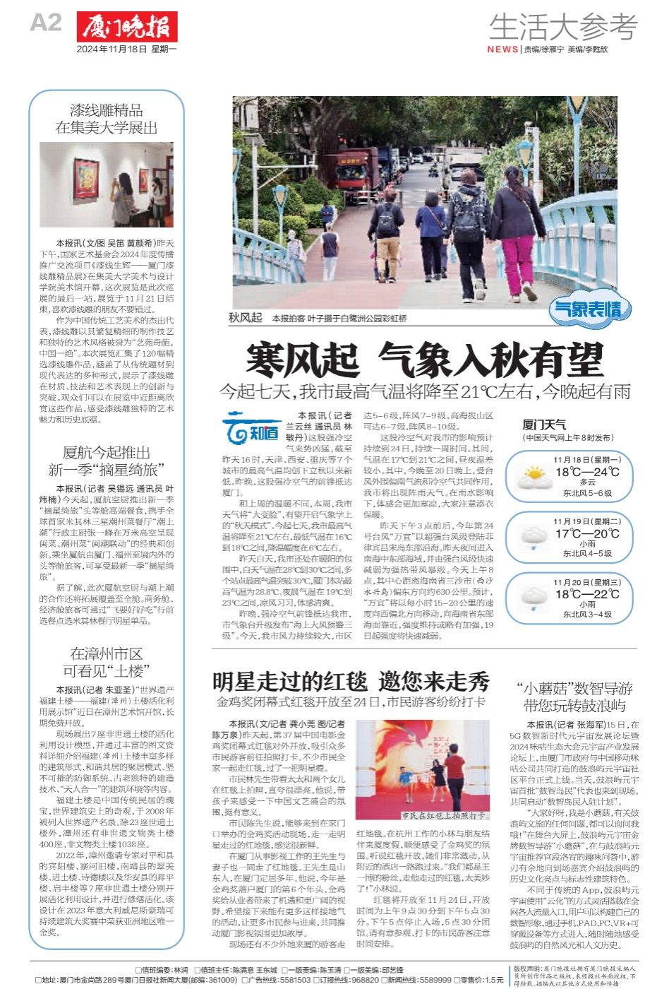 本报讯(文/图 吴笛 黄颜希)昨天下午,国家艺术基金会2024年度传播推广交流项目《漆线生辉——厦门漆线雕精品展》在亚洲中文精品乱码美术与设计学院美术馆开幕,这次展览是此次巡展的最后一站,展览于11月21日结束,喜欢漆线雕的朋友不要错过。